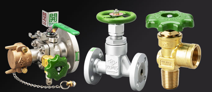ボール弁、グローブ弁、逆止弁、安全弁、緊急遮断弁、ストレーナ、ニードル弁、Y型弁、ゲート弁、バタフライ弁、充填弁など
